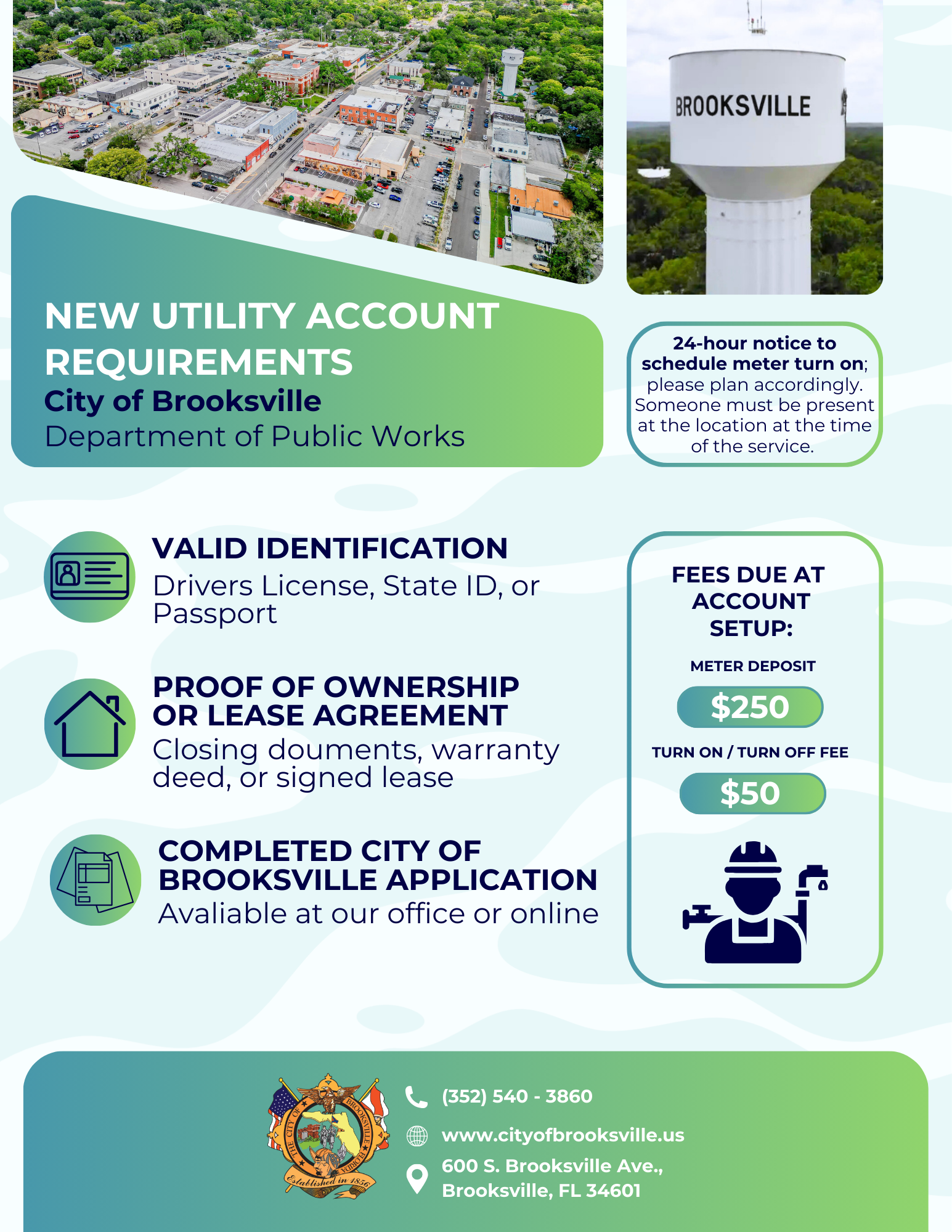 Utilities Customer Service is open 8:30 AM to 4:00 PM.